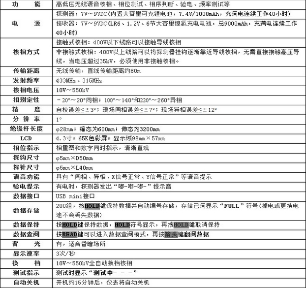 RT9000智能無(wú)線(xiàn)高低壓核相儀是一款全智能無(wú)線(xiàn)高低壓語(yǔ)音核相儀,突破傳統核相儀電壓等級限制問(wèn)題,可以在極地電壓線(xiàn)路中核相,完全實(shí)現從10~550KV電壓自動(dòng)核相(如400V、10KV、35KV、66KV、110KV、220KV),無(wú)需根據電壓等級購置多套核相儀或分別配置高低壓探測器,節省成本、減少攜帶、省時(shí)快捷。對于高壓線(xiàn)路核相(電壓超過(guò)400V),可將探測器的金屬探鉤逐漸靠近導線(xiàn),當感應到電場(chǎng)信號即可完成核相,無(wú)需直接接觸高壓導線(xiàn),安全!本儀器還具有測試相位、頻率、相許、驗電、變壓器組別判斷等功能。